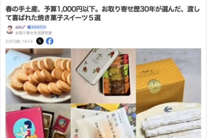 Yahoo!ニュースエキスパートで『春の手土産、予算1,000円以下。お取り寄せ歴30年が選んだ、渡して喜