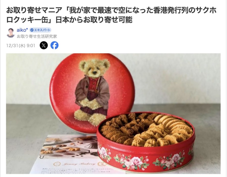 Yahoo!ニュースエキスパートで『お取り寄せマニア「我が家で最速で空になった香港発行列のサクホロクッキー缶」日本からお取り寄せ可能』を公開しました