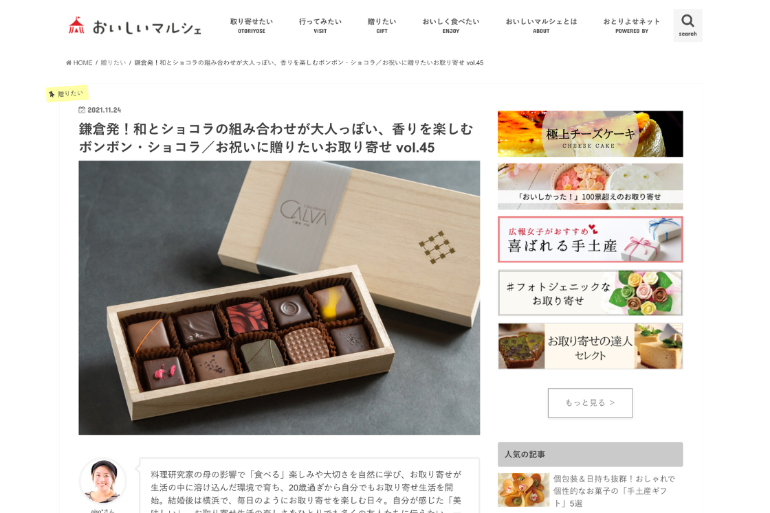 【おいしいマルシェ】鎌倉発!和とショコラの組み合わせが大人っぽい、香りを楽しむボンボン・ショコラ/お祝いに贈りたいお取り寄せ vol.45