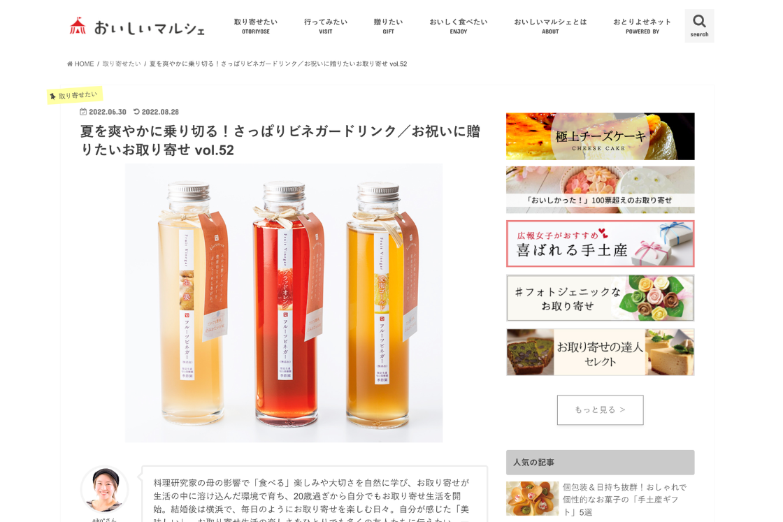 【おいしいマルシェ】夏を爽やかに乗り切る!さっぱりビネガードリンク/お祝いに贈りたいお取り寄せ vol.52